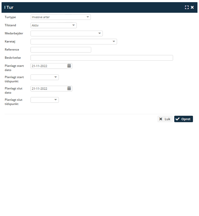 - Mulighed for at oprette ture, medarbejder, opgaver m.m.