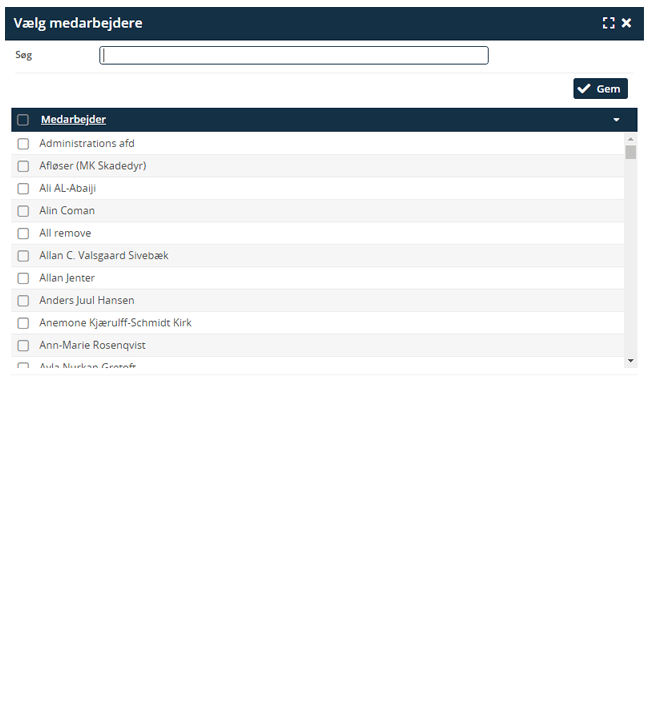 Viser hvilke medarbejdere der er knyttet til den valgte tur og man kan knytte nye medarbejdere.